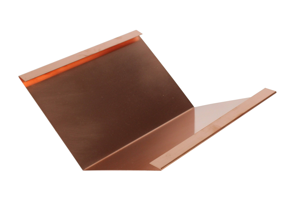 Kupfer Kehlblech. Das Kehlbech führt von 2 zusammenführenden Dachflächen das Wasser ab. Die Kehlneigung beschreibt die Neigung der Winkel in der Dachkehle von sich berührenden Dachflächen. Dabei gilt prinzipiell: die Kehlneigung ist immer geringer als die Dachneigung.