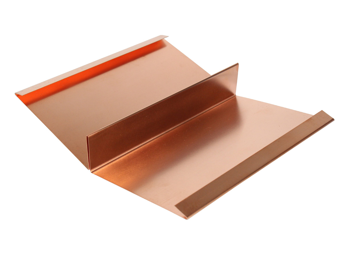 Kupfer Kehlblech. Das Kehlbech führt von 2 zusammenführenden Dachflächen das Wasser ab. Der Stehfalz verhindert bei flachen Dachneigungen das überschießen des Regenwassers auf die gegenüberliegende Dachseite. Die Kehlneigung beschreibt die Neigung der Winkel in der Dachkehle von sich berührenden Dachflächen. Dabei gilt prinzipiell: die Kehlneigung ist immer geringer als die Dachneigung.