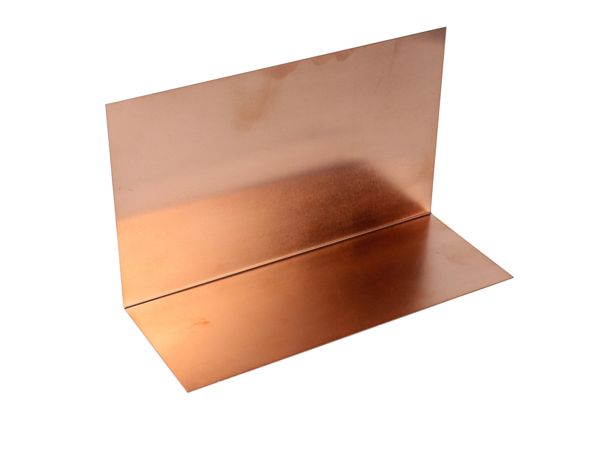 Kupfer Wandanschlußblech, Wandkehlblech auch Wandeinfassung genannt, als Anschluß an seitlich aufgehende Bauteile.