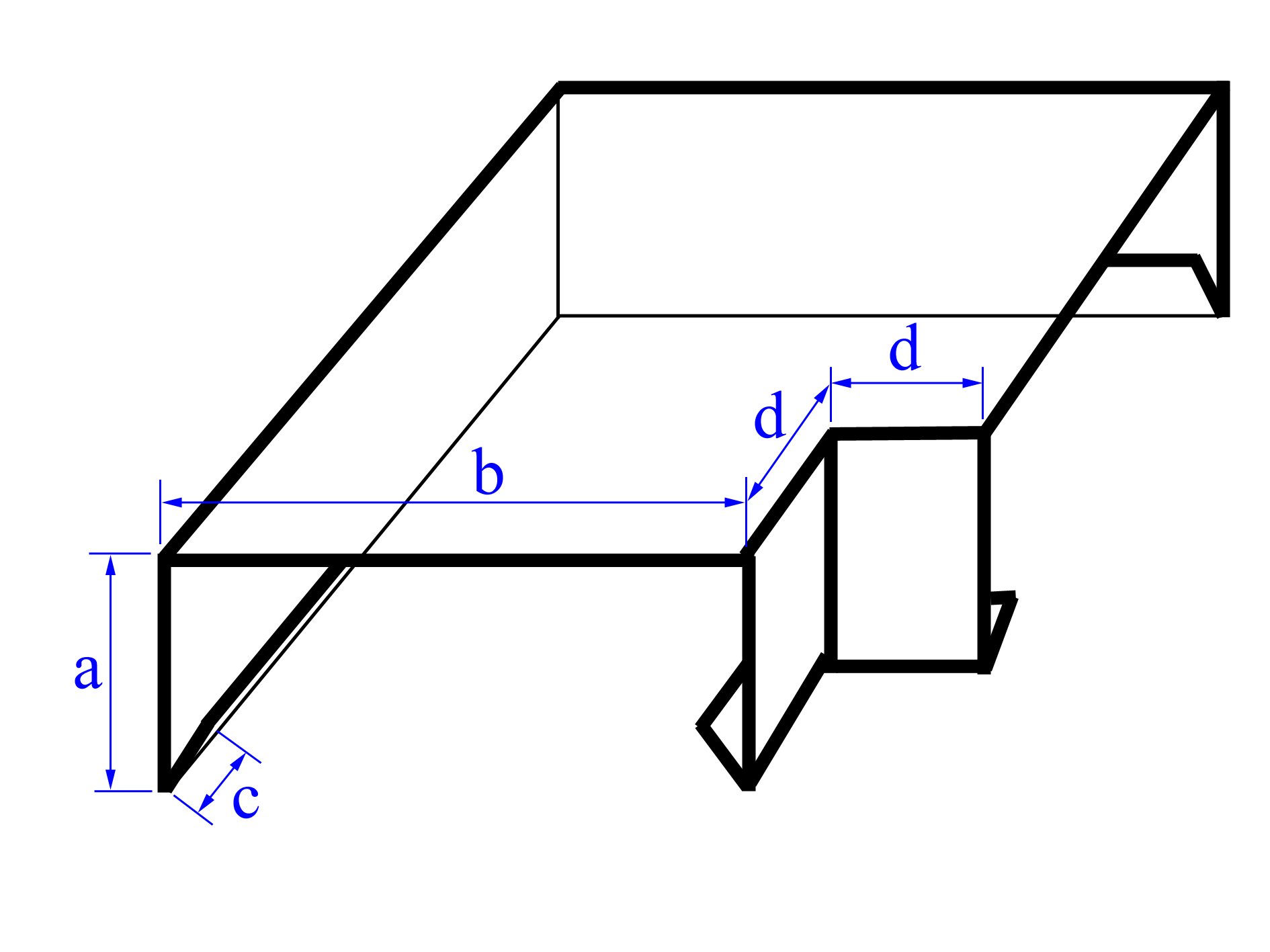 - Breiten in mm: a=30, b=170, c=10, d=200