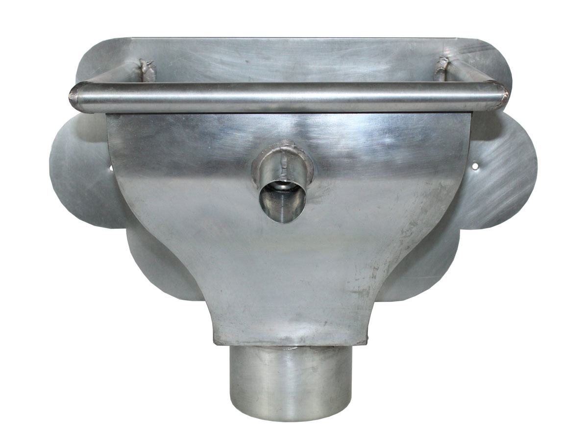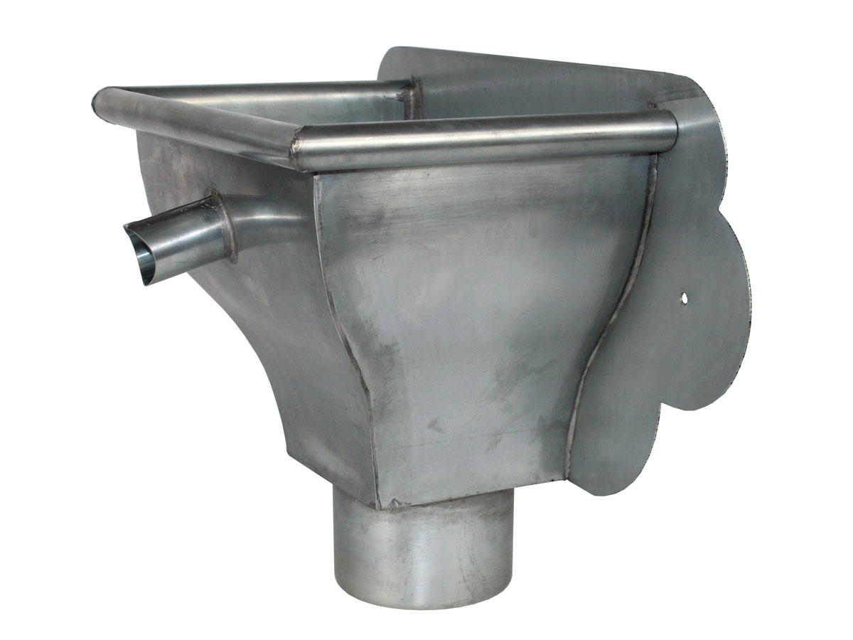 Titan-Zink Wasserfangkasten, Rinnenkessel für halbrunde und kastenförmige Dachrinnen als Verbindung zum Fallrohr.