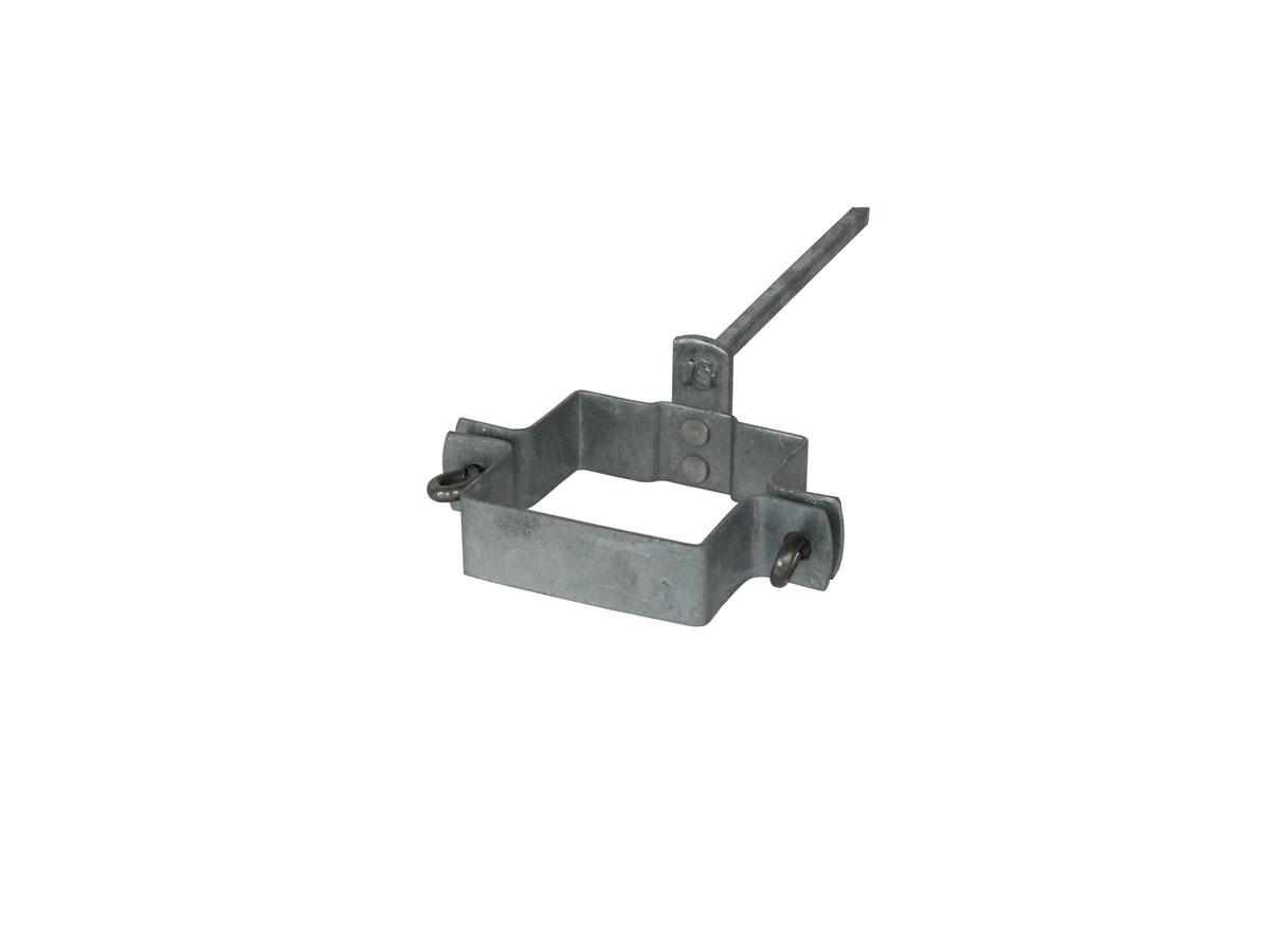 verzinkte Rohrschelle für quadratisches Fallrohr mit Schrauben und Mutter M10.